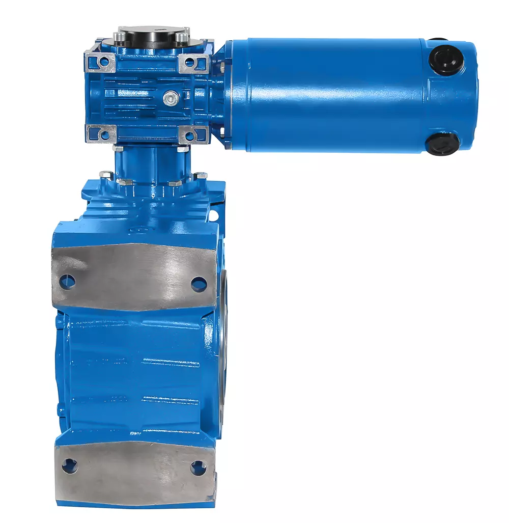 De tandwielmotor kan in beide draairichtingen worden gebruikt en is bij levering voorzien van een olievulling.