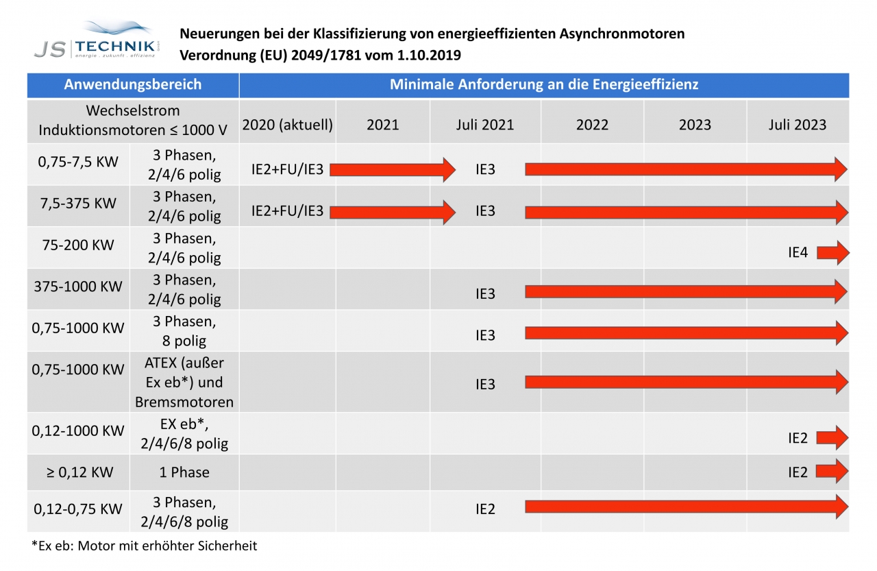 hier vindt u de huidige efficiëntieniveaus - nieuwe regelgeving voor elektromotoren. De vereiste rendementsspecificaties zijn natuurlijk verkrijgbaar bij JS-Technik.